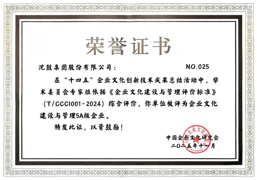 企業(yè)文化建設(shè)與管理5A級企業(yè)認(rèn)證是中國企業(yè)文化研究會在全國范圍內(nèi)設(shè)立的更高級別企業(yè)文化評價體系。該認(rèn)證經(jīng)過案例征集、專家調(diào)研、專家評審、企業(yè)員工問卷調(diào)查等多重環(huán)節(jié)嚴(yán)格篩選。2024年6月,中國企業(yè)文化研究會發(fā)布《企業(yè)文化建設(shè)與管理評價標(biāo)準(zhǔn)》,依據(jù)此標(biāo)準(zhǔn),中國企業(yè)文化研究會于2025年11月,從全國300余家知名企業(yè)中評選出30家“十四五”企業(yè)文化建設(shè)與管理5A級企業(yè)。沈鼓集團(tuán)與中石油、中航工業(yè)、一汽集團(tuán)等央企巨頭共同入選,這是沈鼓繼獲得2024年度5A級企業(yè)后再次入選,彰顯了沈鼓“十四五”期間在企業(yè)文化建設(shè)方面的卓越成就。